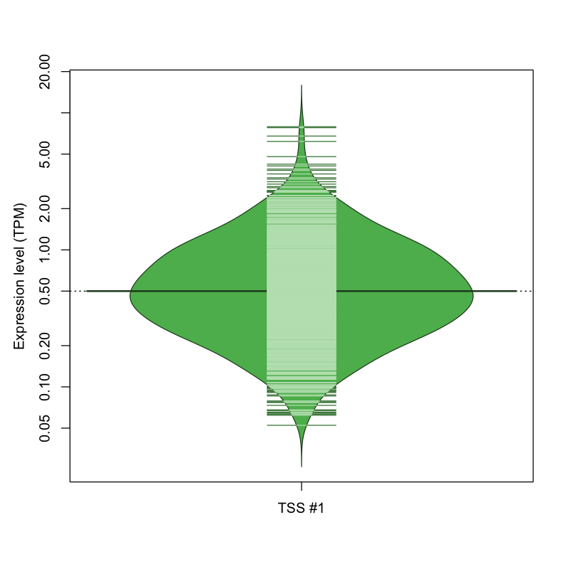 TSS expression levels were studied across 1829 TSS-CAGE libraries, based on FANTOM5 data.