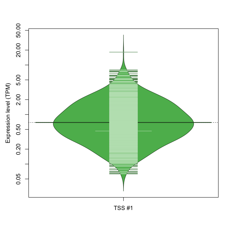 TSS expression levels were studied across 1829 TSS-CAGE libraries, based on FANTOM5 data.
