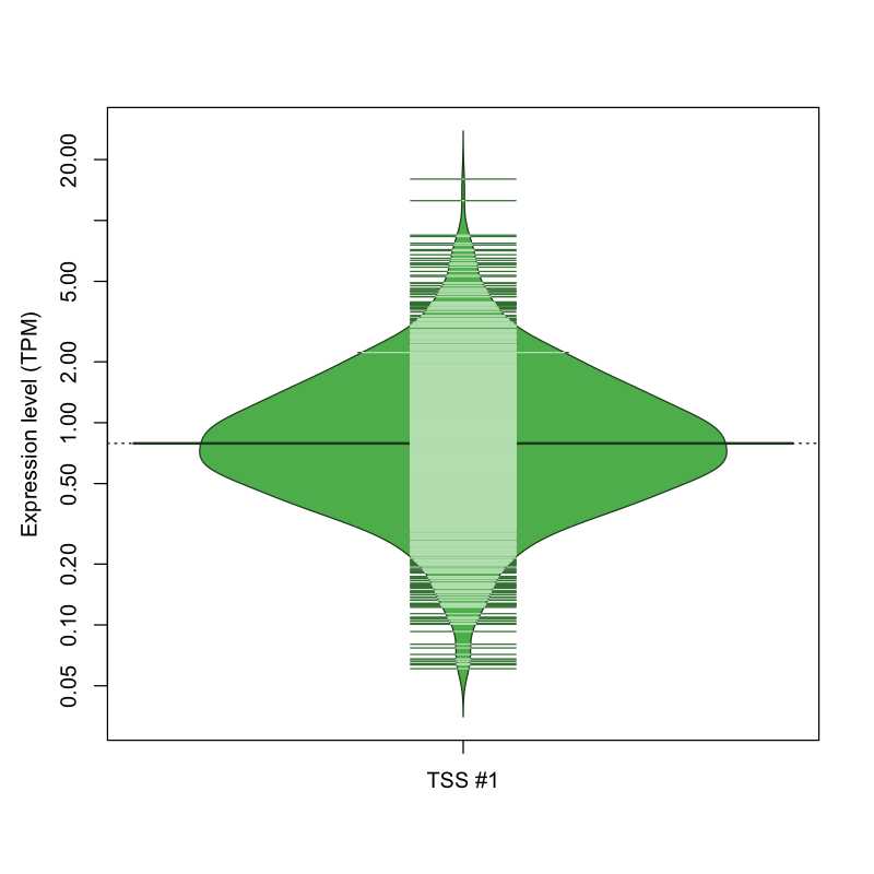 TSS expression levels were studied across 1829 TSS-CAGE libraries, based on FANTOM5 data.