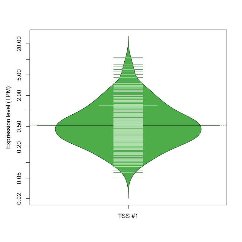 TSS expression levels were studied across 1829 TSS-CAGE libraries, based on FANTOM5 data.
