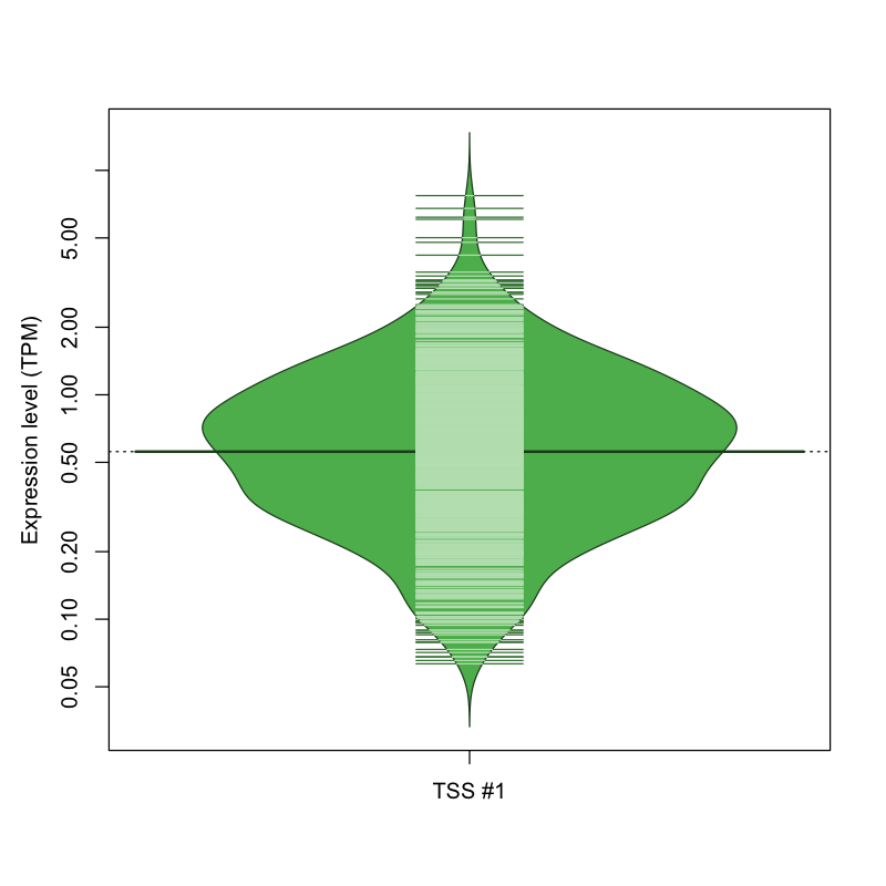 TSS expression levels were studied across 1829 TSS-CAGE libraries, based on FANTOM5 data.