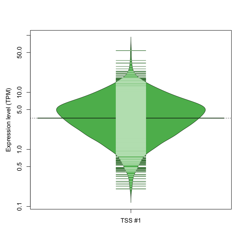 TSS expression levels were studied across 1829 TSS-CAGE libraries, based on FANTOM5 data.