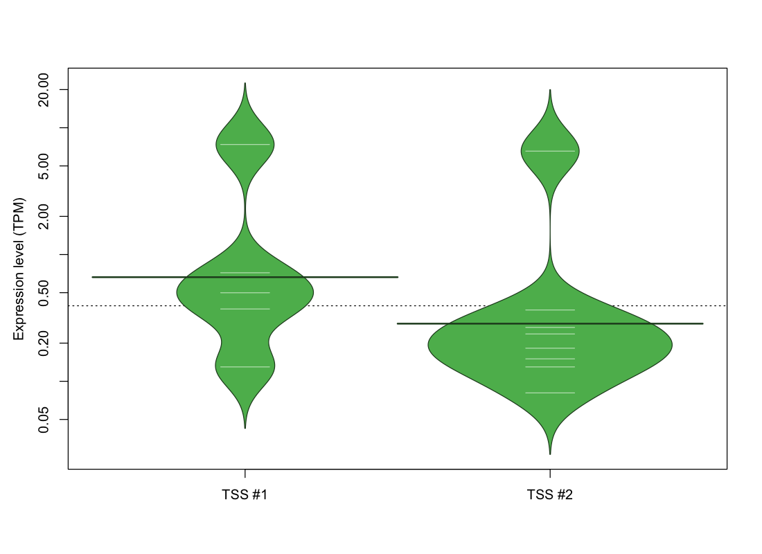 TSS expression levels were studied across 1829 TSS-CAGE libraries, based on FANTOM5 data.