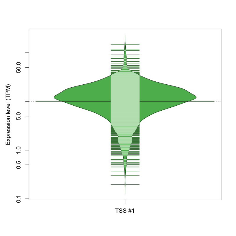TSS expression levels were studied across 1829 TSS-CAGE libraries, based on FANTOM5 data.