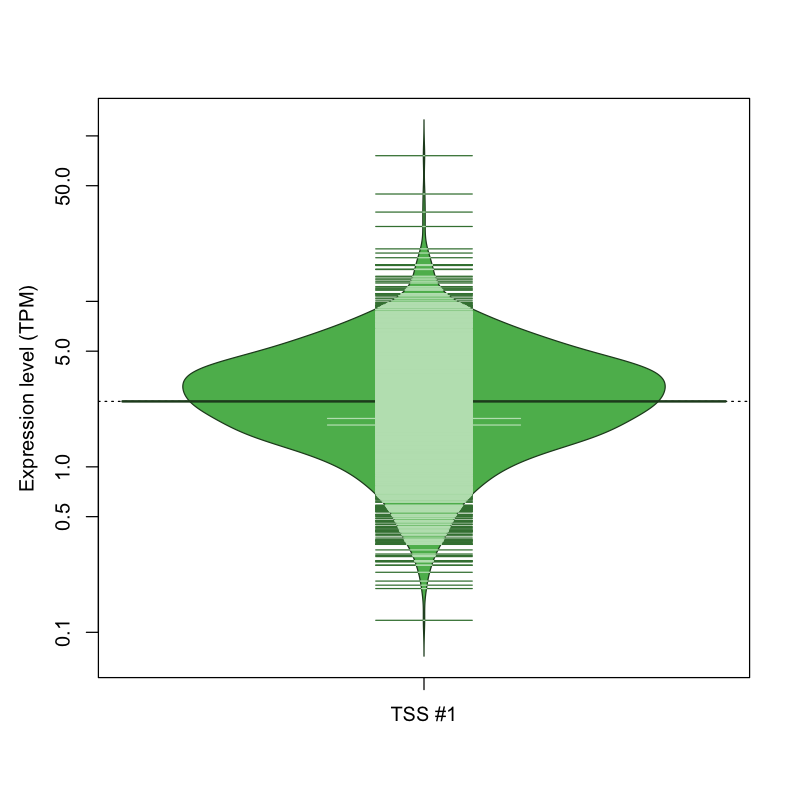 TSS expression levels were studied across 1829 TSS-CAGE libraries, based on FANTOM5 data.