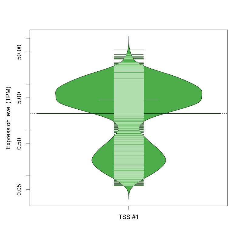 TSS expression levels were studied across 1829 TSS-CAGE libraries, based on FANTOM5 data.