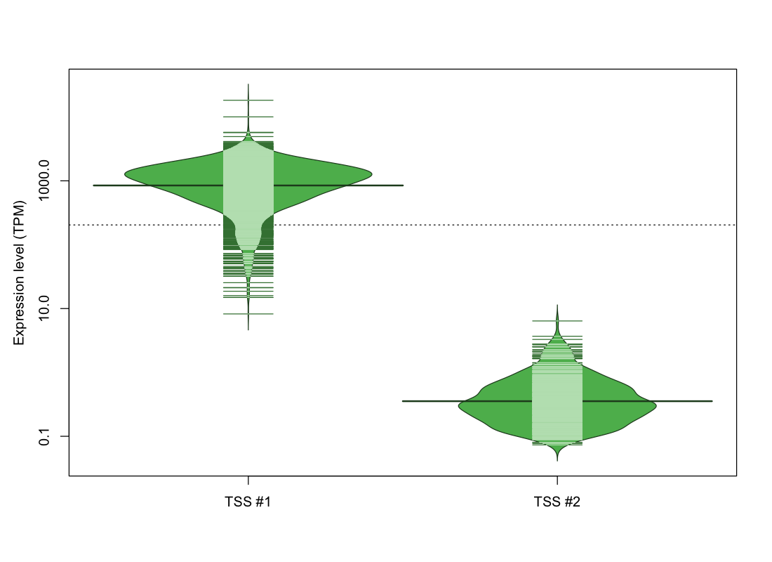 TSS expression levels were studied across 1829 TSS-CAGE libraries, based on FANTOM5 data.