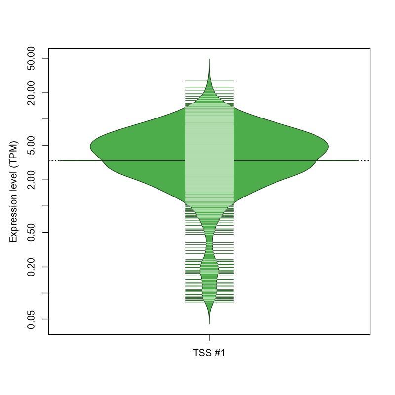 TSS expression levels were studied across 1829 TSS-CAGE libraries, based on FANTOM5 data.