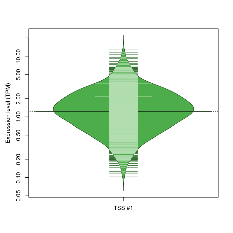 TSS expression levels were studied across 1829 TSS-CAGE libraries, based on FANTOM5 data.