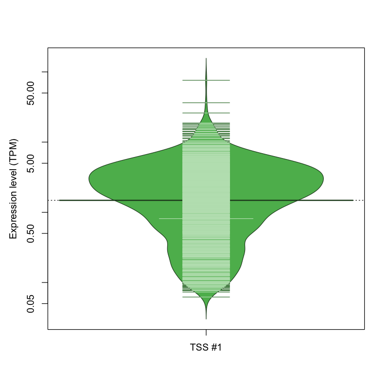 TSS expression levels were studied across 1829 TSS-CAGE libraries, based on FANTOM5 data.