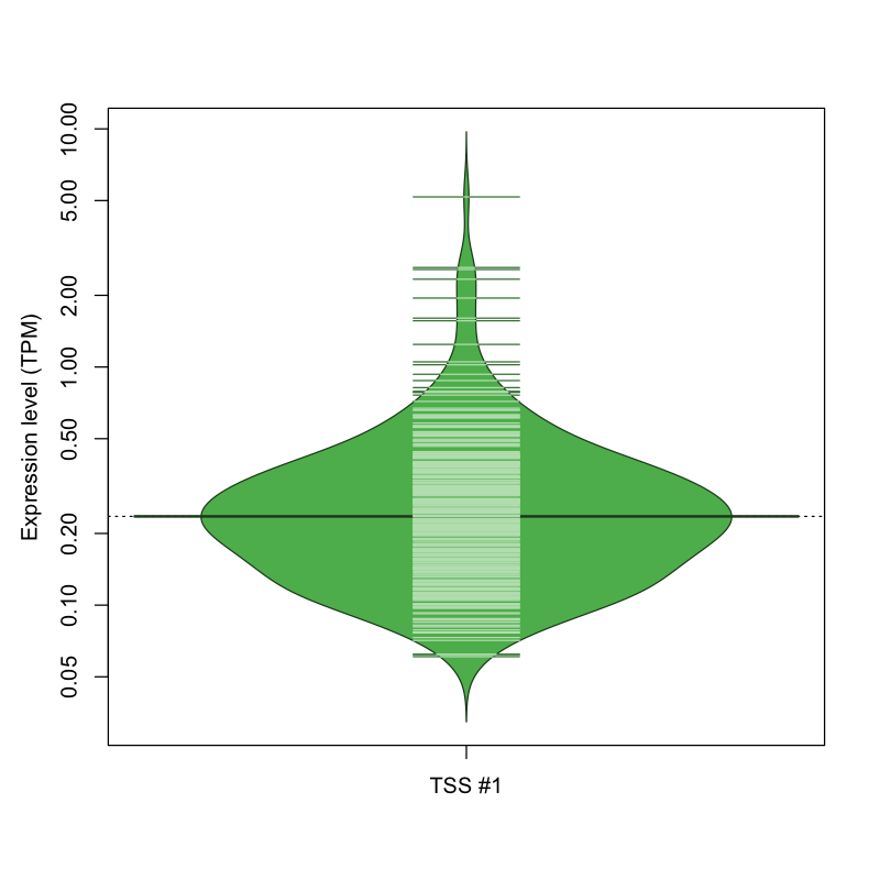 TSS expression levels were studied across 1829 TSS-CAGE libraries, based on FANTOM5 data.