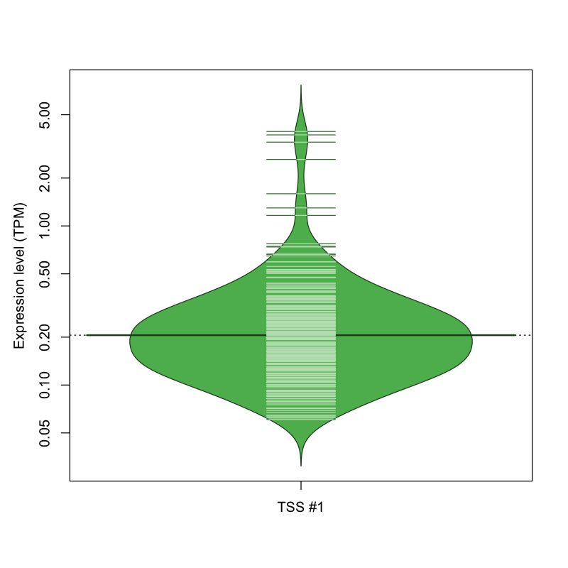 TSS expression levels were studied across 1829 TSS-CAGE libraries, based on FANTOM5 data.