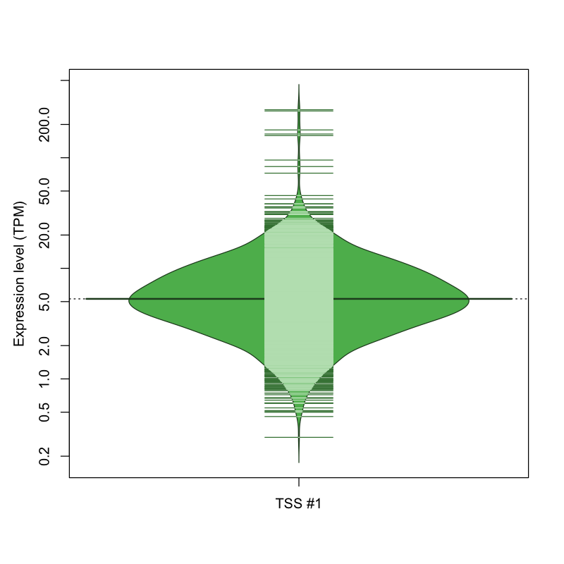 TSS expression levels were studied across 1829 TSS-CAGE libraries, based on FANTOM5 data.