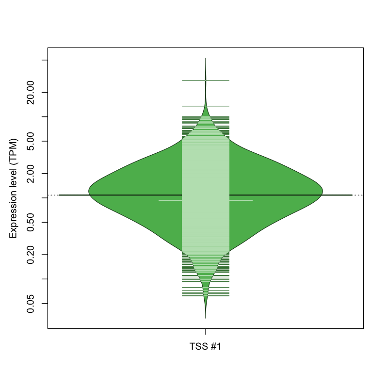 TSS expression levels were studied across 1829 TSS-CAGE libraries, based on FANTOM5 data.