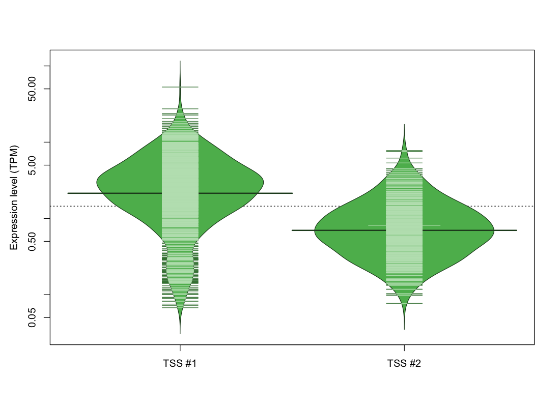 TSS expression levels were studied across 1829 TSS-CAGE libraries, based on FANTOM5 data.