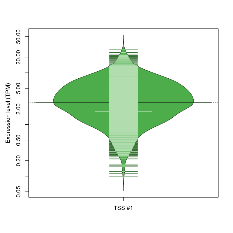 TSS expression levels were studied across 1829 TSS-CAGE libraries, based on FANTOM5 data.