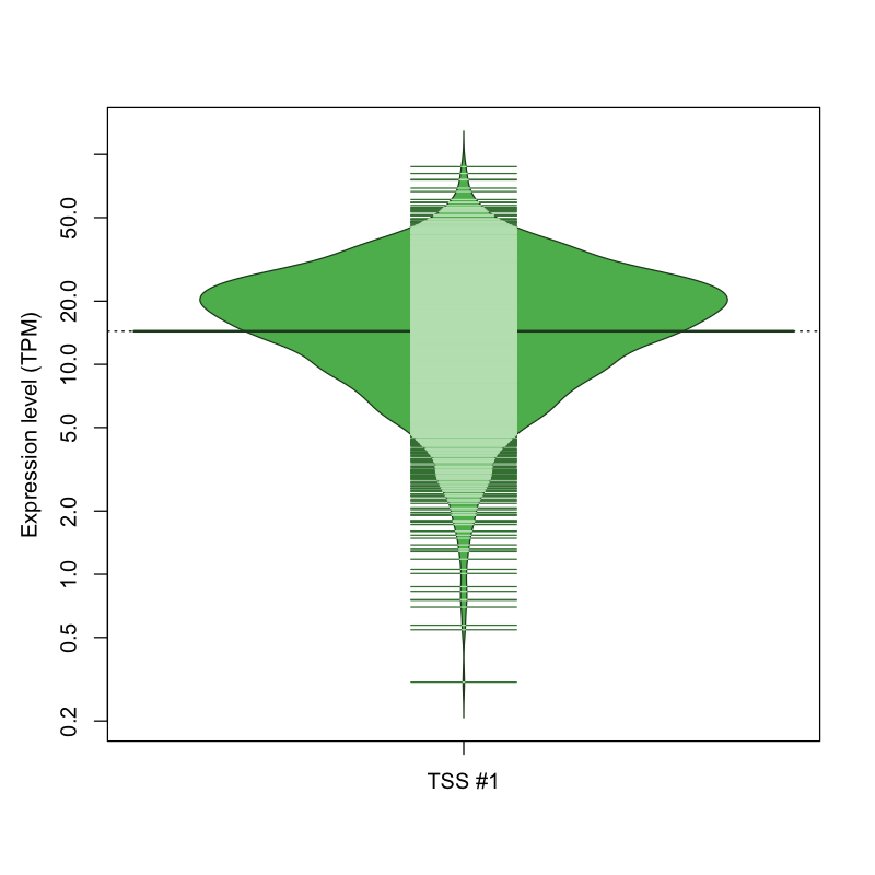 TSS expression levels were studied across 1829 TSS-CAGE libraries, based on FANTOM5 data.