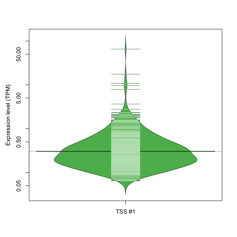 TSS expression levels were studied across 1829 TSS-CAGE libraries, based on FANTOM5 data.