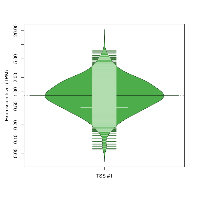 TSS expression levels were studied across 1829 TSS-CAGE libraries, based on FANTOM5 data.
