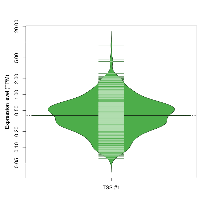 TSS expression levels were studied across 1829 TSS-CAGE libraries, based on FANTOM5 data.