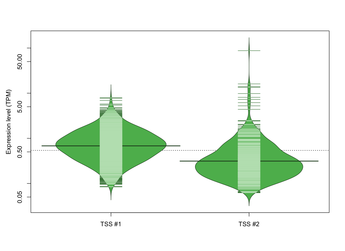 TSS expression levels were studied across 1829 TSS-CAGE libraries, based on FANTOM5 data.