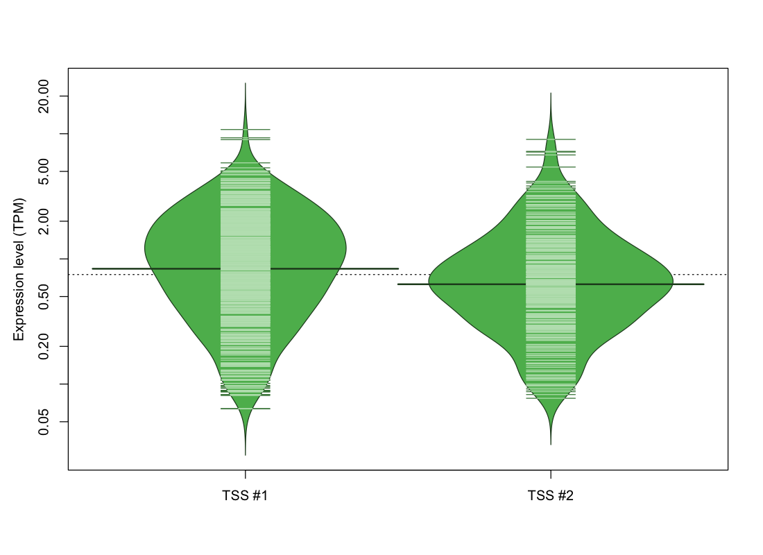 TSS expression levels were studied across 1829 TSS-CAGE libraries, based on FANTOM5 data.