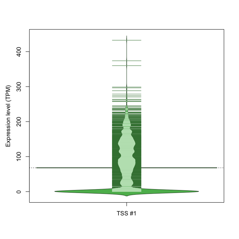 TSS expression levels were studied across 1829 TSS-CAGE libraries, based on FANTOM5 data.