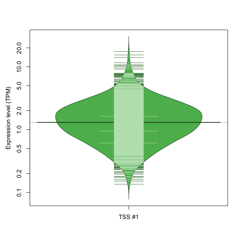 TSS expression levels were studied across 1829 TSS-CAGE libraries, based on FANTOM5 data.