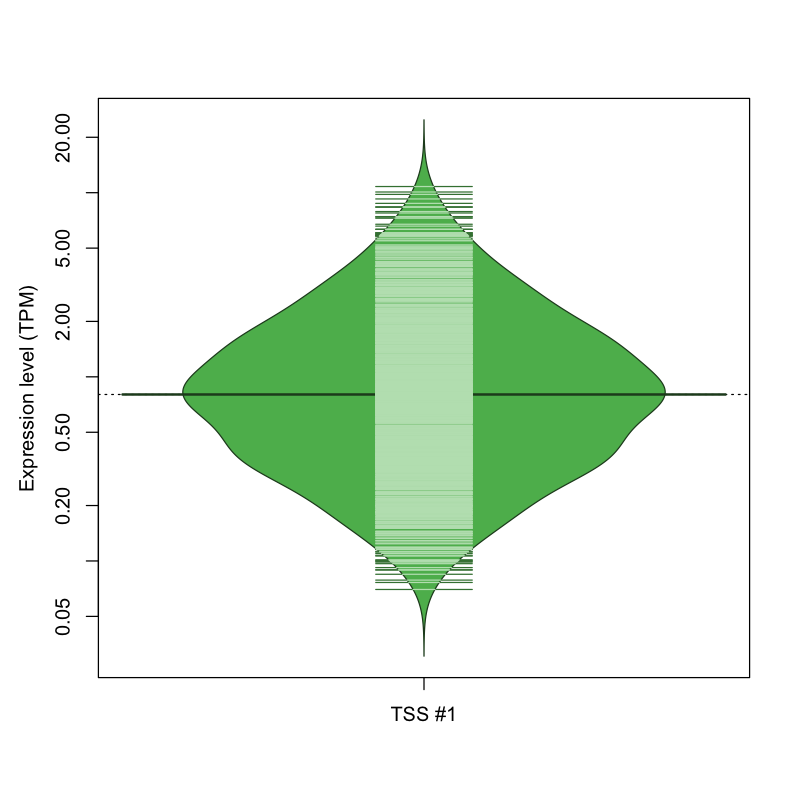 TSS expression levels were studied across 1829 TSS-CAGE libraries, based on FANTOM5 data.