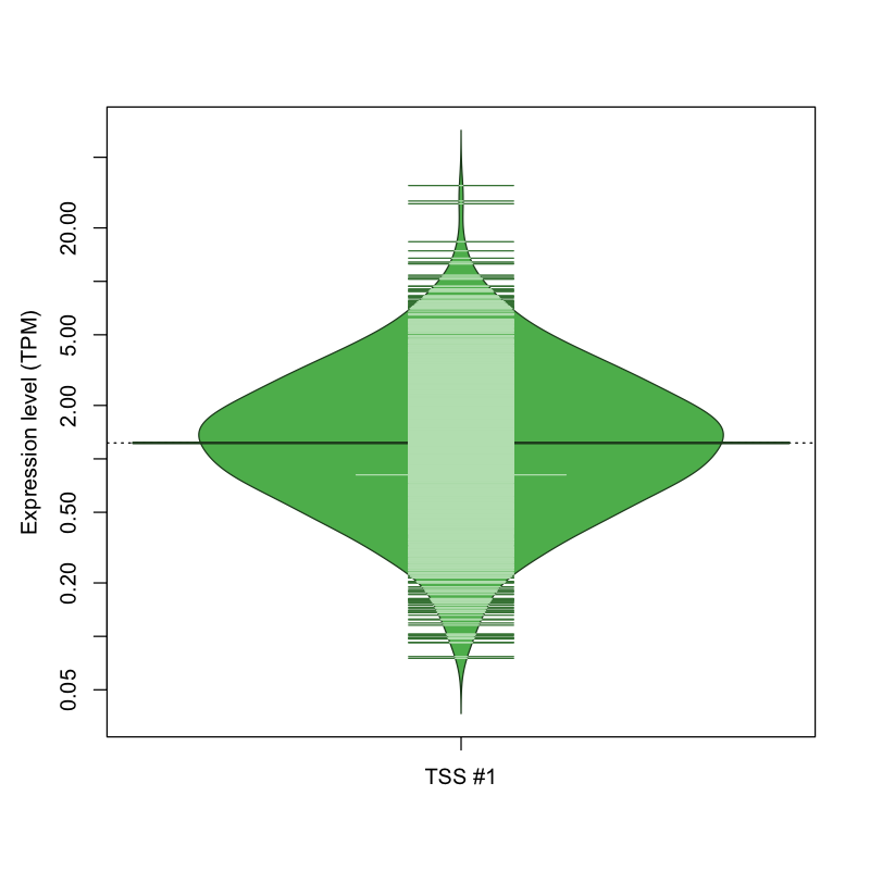 TSS expression levels were studied across 1829 TSS-CAGE libraries, based on FANTOM5 data.