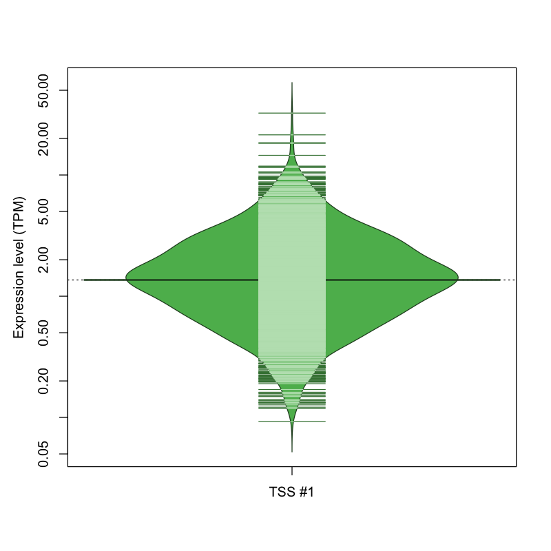 TSS expression levels were studied across 1829 TSS-CAGE libraries, based on FANTOM5 data.