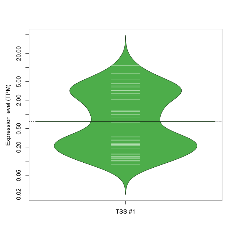 TSS expression levels were studied across 1829 TSS-CAGE libraries, based on FANTOM5 data.