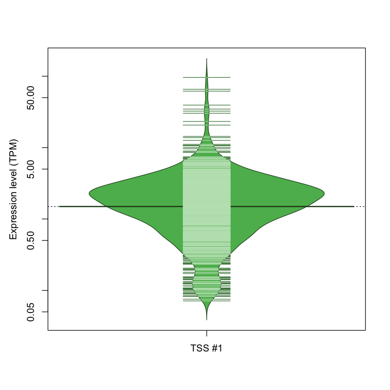 TSS expression levels were studied across 1829 TSS-CAGE libraries, based on FANTOM5 data.