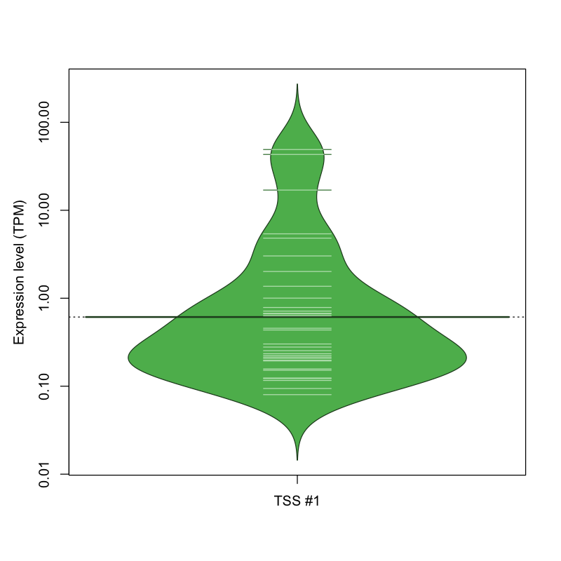 TSS expression levels were studied across 1829 TSS-CAGE libraries, based on FANTOM5 data.