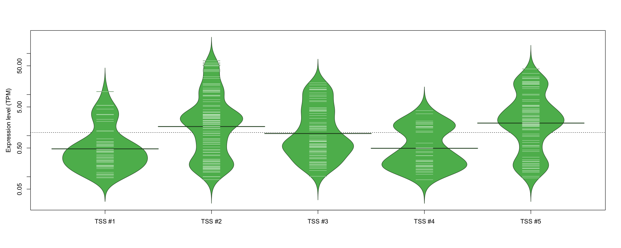 | TSS No. | TSS Name | TSS expression level (Expr) in TPM range: | ||||