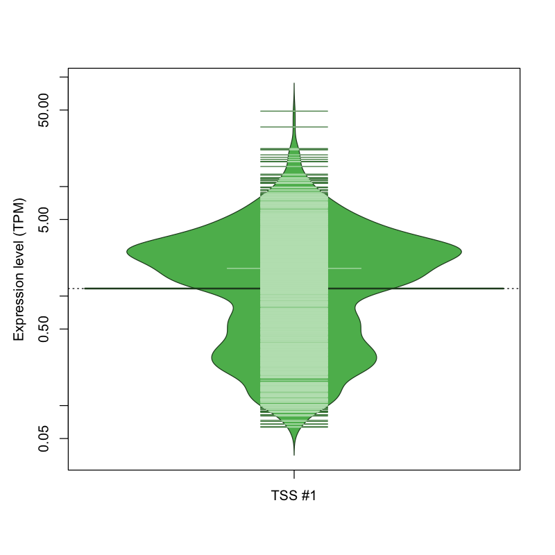 TSS expression levels were studied across 1829 TSS-CAGE libraries, based on FANTOM5 data.