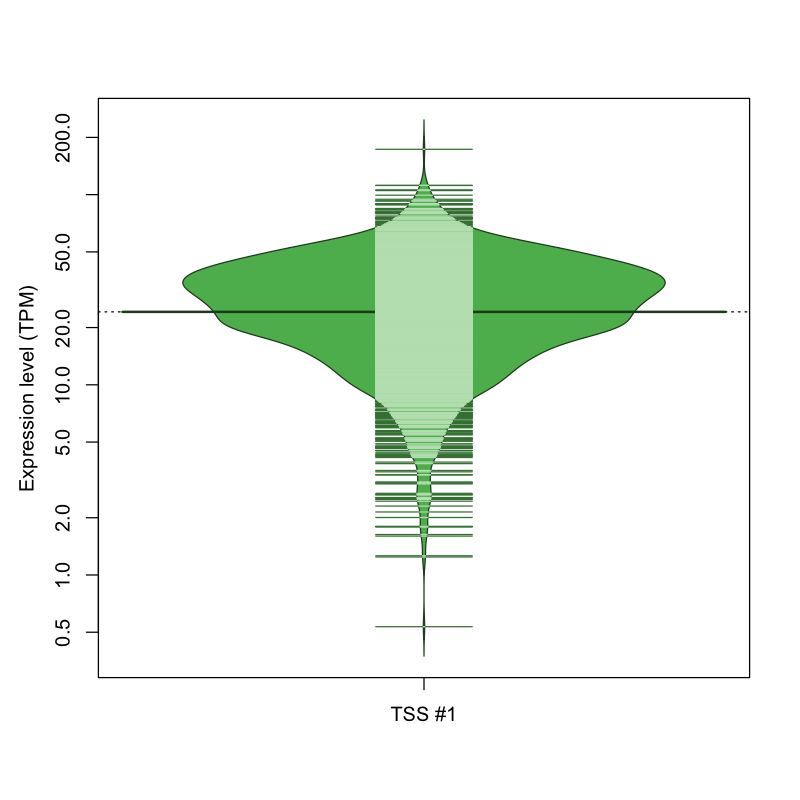TSS expression levels were studied across 1829 TSS-CAGE libraries, based on FANTOM5 data.