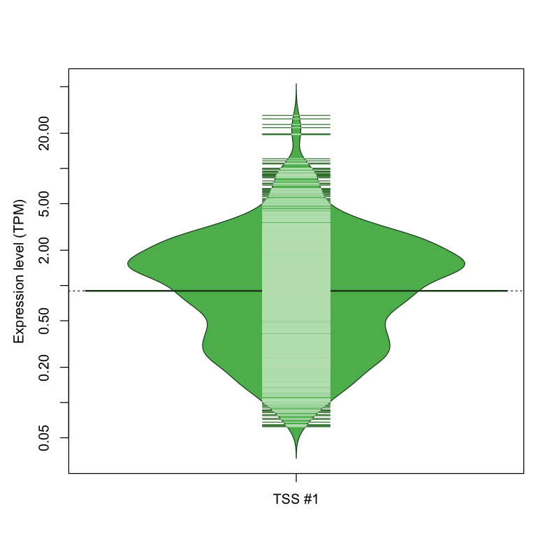 TSS expression levels were studied across 1829 TSS-CAGE libraries, based on FANTOM5 data.