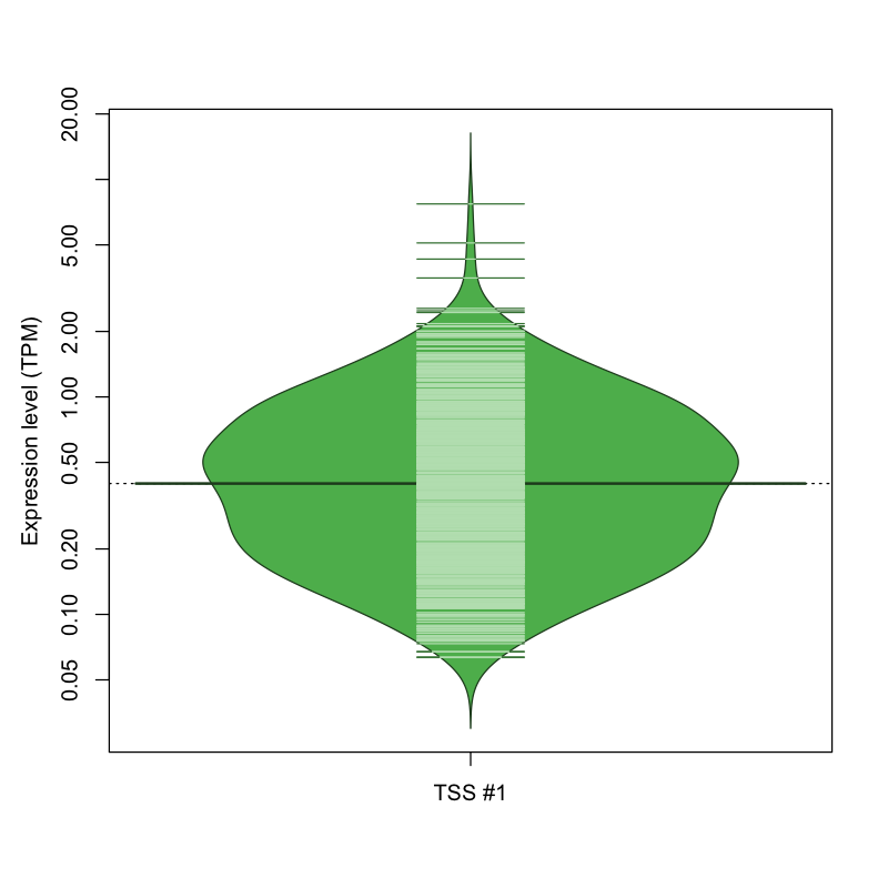 TSS expression levels were studied across 1829 TSS-CAGE libraries, based on FANTOM5 data.