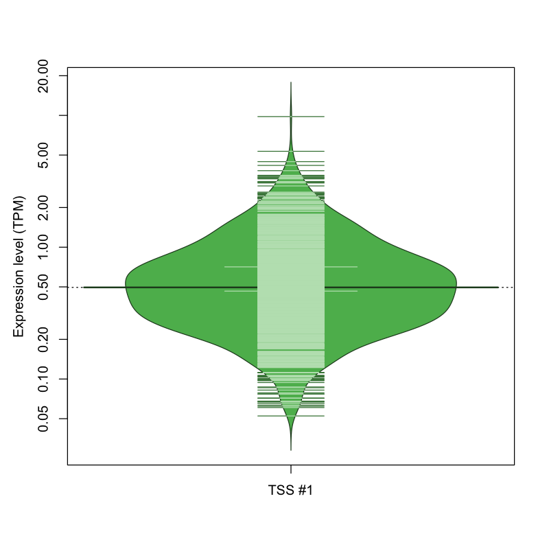 TSS expression levels were studied across 1829 TSS-CAGE libraries, based on FANTOM5 data.