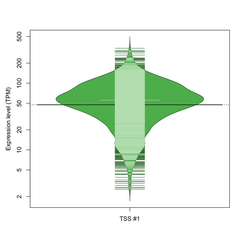 TSS expression levels were studied across 1829 TSS-CAGE libraries, based on FANTOM5 data.