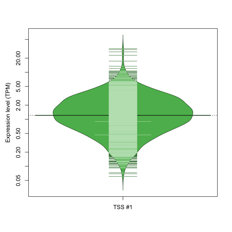 TSS expression levels were studied across 1829 TSS-CAGE libraries, based on FANTOM5 data.